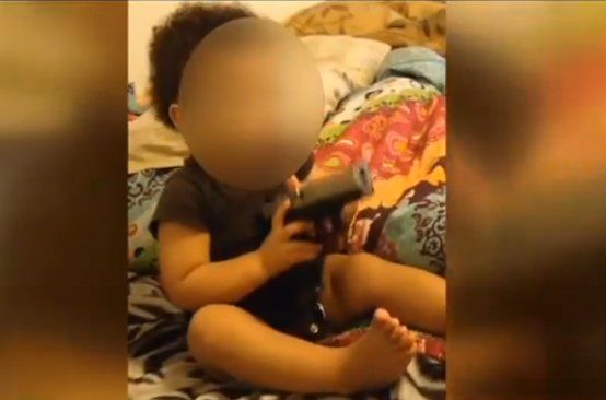 De acuerdo a medios locales, Toni Wilson, de 22 años y Michael Barnes, de 19, padres de la menor, filmaron a través de un celular a la niña de tan sólo un año, jugando con el arma de fuego que incluso coloca en su boca.