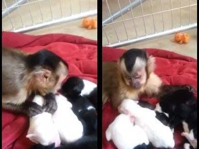 Un monito puso manos a la obra a la hora de cuidar y acicalar a una camada de cachorros que obviamente no le pertenece. Aunque no sean de la misma especie, el instinto pudo más y en el tierno video de YouTube se puede ver cómo acaricia a los perritos.La grabación fue compartida el jueves pasado por el usuario Jesse Lightfoot con el nombre de "Mono y sus nuevos cachorros" y ya obtuvo más de 490 mil reproducciones en el sitio de videos.