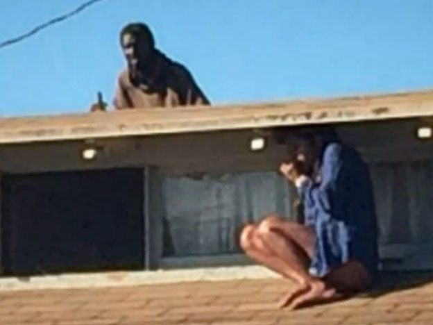 Al principio, los vecinos de la mujer pensaron que la figura de una persona en el techo de la casa era sospechosa, pero cuando vieron al hombre asomarse por el techo se percataron de que se trataba de la legítima ocupante de la casa intentando escapar del intruso.