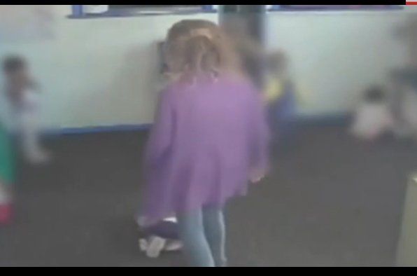 El incidente fue captado por la cámara de seguridad del centro de cuidados para niños Kids Stop-N-Play. La mujer, Linda K. Klemm, madre de cuatro niños, fue acusada de abuso de menores después de que en la grabación se la viera agrediendo a una niña de un año y medio de edad que estaba durmiendo en el piso.