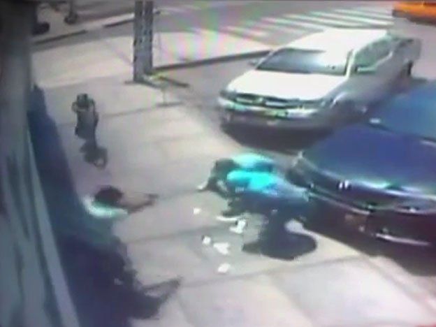 Las imágenes muestran el momento en el que los ladrones llegan en un auto y amenazan con sus armas de fuego un hombre. Este arroja el dinero que tenía en su posesión para distraer a los malvivientes y así logra desenfundar su arma.