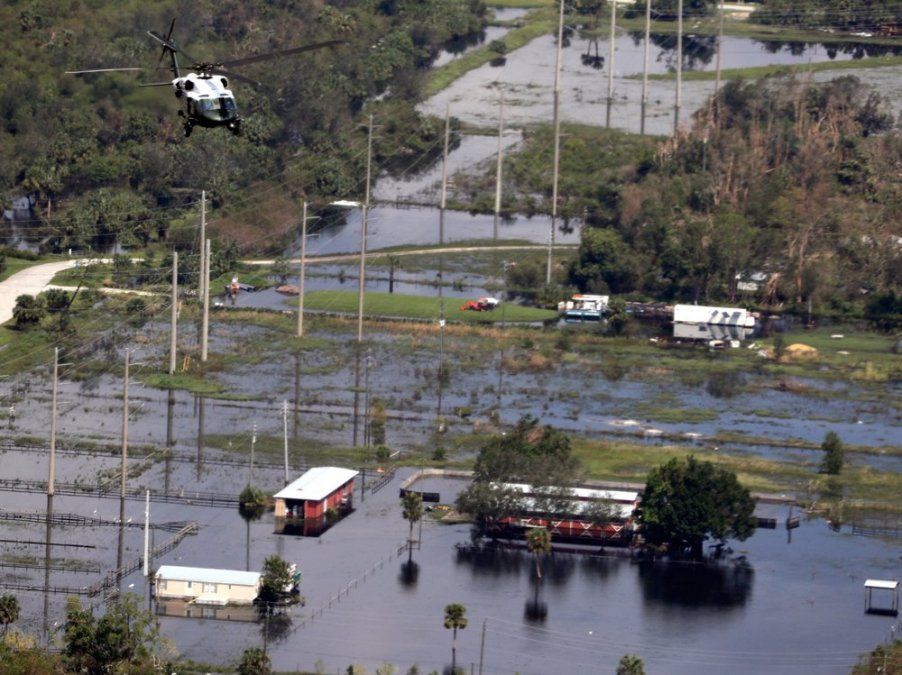 Trump sobrevoló en helicóptero las zonas inundadas y de viviendas dañadas en Naples, un balneario elegante seriamente afectado.