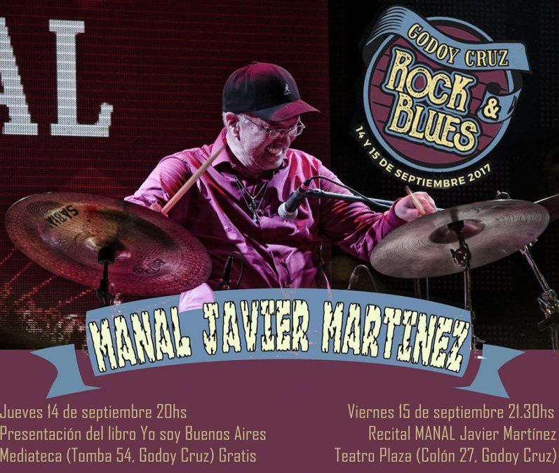 El legendario Manal Javier Martínez será la estrella del festival "Godoy Cruz rock & blues" que se celebrará el viernes 15 de septiembre, a las 21.30, en el Cine teatro Plaza de Godoy Cruz (Colón 27, Godoy Cruz).