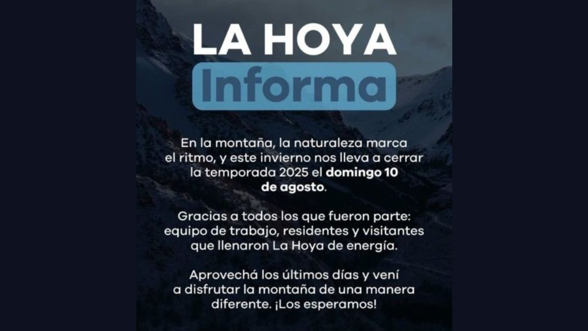 Desde La Hoya aprovecharon el anuncio para agradecer a todos los que formaron parte de esta temporada atípica: trabajadores, vecinos y turistas que, a pesar de todo, se acercaron al cerro a disfrutar del invierno. Y también dejaron una invitación abierta para estos últimos días para despedir la temporada como se merece.