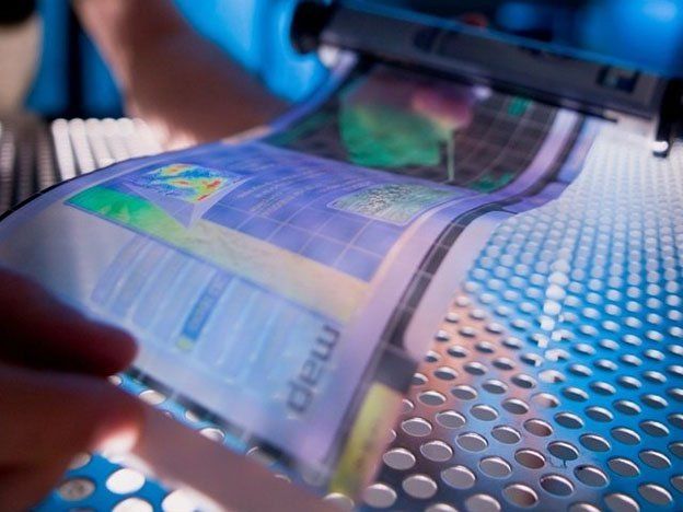 En el caso de las pantallas flexibles, éstas incluyen sustratos de plástico, así como electrónica plástica para el soporte del material.