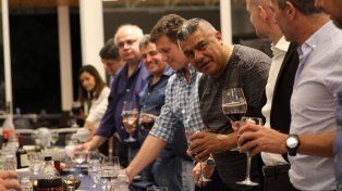 El presidente de la Asociación del Fútbol Argentino, Claudio Tapia, participó este lunes por la noche de una multitudinaria cena de dirigentes en la que se brindó con copas con el escudo de Boca Juniors.