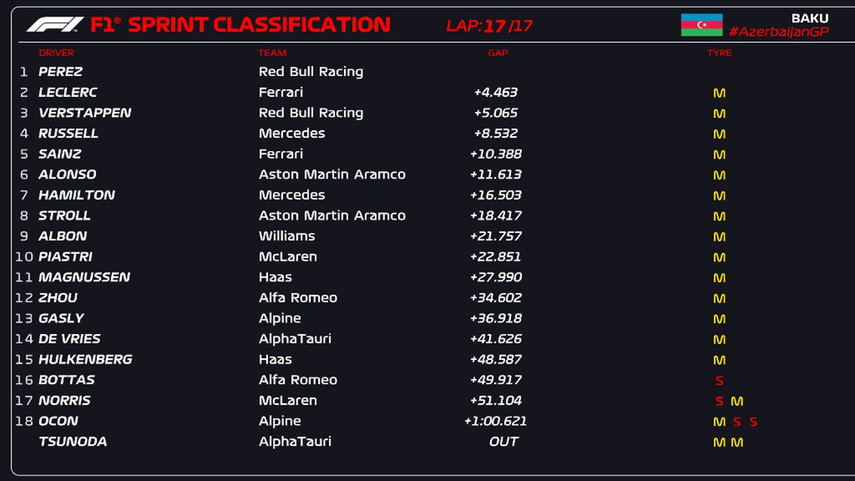 F1: así quedó el sprint del GP de Azerbaiyán