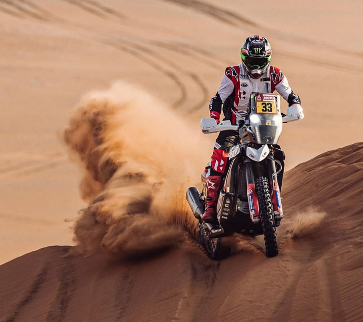 El penúltimo acto de la prueba “tuerca” más dura del planeta, tuvo un tramo de 675 kilómetros (154 cronometrados) entre las localidades de Shaybah y Al-Hofuf, paralelo al límite con Emiratos Árabes Unidos y Qatar.