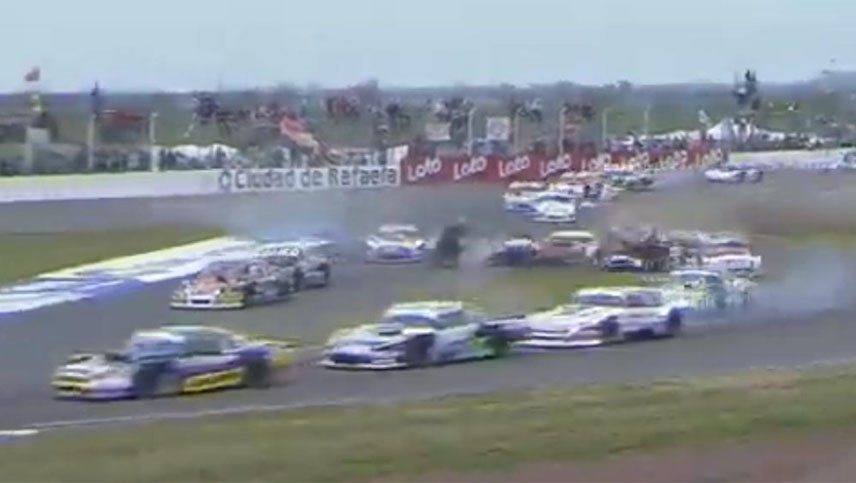 El accidente se produjo durante la primera vuelta cuando el Chevrolet de Bonelli tuvo un inconveniente al llegar al frenaje de la segunda chicana, se salió de la pista y le pegó al Ford de Jalaf, tras lo cual ambos pilotos fueron retirados de sus autos.