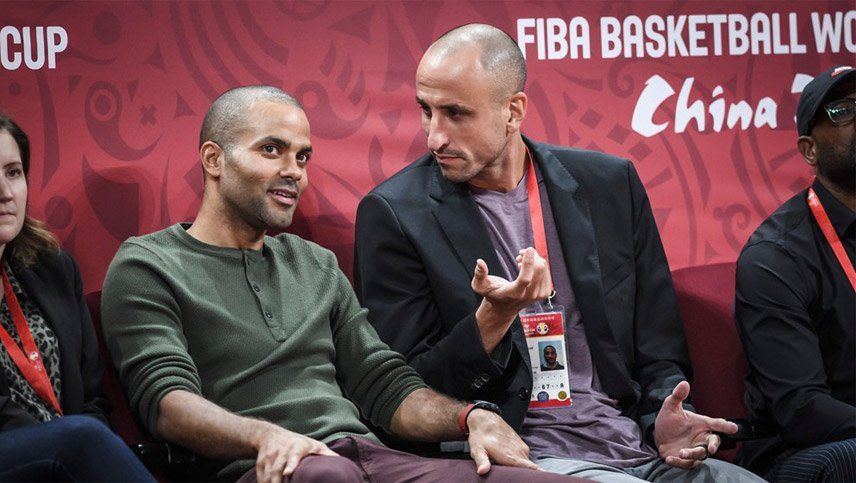 Para la gran final ante España, el bahiense estuvo nuevamente a metros del rectángulo de juego y con otro compañero de lujo, en la oportunidad anterior cuando lo vio con Kobe Bryant a su lado, Tony Parker, su compañero de andanzas en San Antonio.