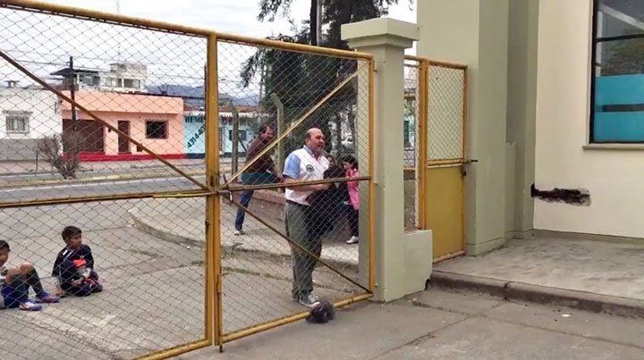 En el video se puede observar a esta persona del otro lado de la reja de entrada a la concentración del equipo nacional alentando sin importarle nada ante la mirada de algunos testigos.