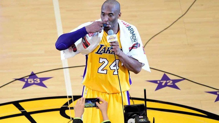 La noche del 13 de abril de 2016, Bryant se despidió del básquetbol profesional después de anotar 60 puntos en la victoria sobre Utah Jazz y dio su discurso de adiós con una toalla al hombro que un fanático le arrebató cuando se dirigía a los camarines.