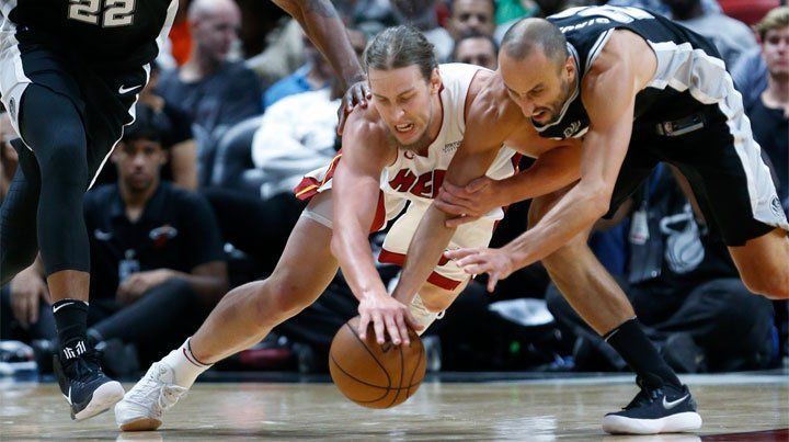El goleador del juego en Miami (2-2) fue su compañero y pivote LaMarcus Aldridge con 31 puntos en 38 minutos, mientras que el goleador de los Heat fue Tyler Johnson con 23 tantos en 33. Esta noche, a las 21, en el United Center de Chicago, Atlanta Hawks visitará a los Bulls con la posibilidad de que el alero santafesino Nicolás Brussino sume algunos minutos en los Hawks. Otros resultados y goleadores de anoche: Charlotte Hornets 110 (Kaminsky 20)-Denver Nuggets 93 (Jokic 18 y G. Harris 18), Detroit Pistons 112 (T. Harris 24)-Minnesota Timberwolves 101 (Towns 23), Philadelphia Sixers 104 (Redick 22)-Houston Rockets 105 (E. Gordon 29). Brooklyn Nets 112 (Dinwiddie 22)-Cleveland Cavaliers 107 (James 29), Oklahoma City Thunder 114 (Anthony 28 y Westbrook 28)-Indiana Pacers 96 (Oladipo 35), Dallas Mavericks 103 (Smith Jr 19)-Memphis Grizzlies 94 (M. Gasol 26). Phoenix Suns 97 (Warren 27)-Utah Jazz 88 (Hood 22), Golden State Warriors 117 (Curry 30)-Toronto Raptors 112 (DeRozan 24) y LA Lakers 102 (Ingram 19)-Washington Wizards 99 (Beal 28), en tiempo extra luego de igualar en 95. Partidos para este jueves: Memphis Grizzlies-Dallas Mavericks, Milwaukee Bucks-Boston Celtics, Portland Trail Blazers-LA Clippers y Sacramento Kings-New Orleans Pelicans.Así jugó Ginóbili ante los Heat