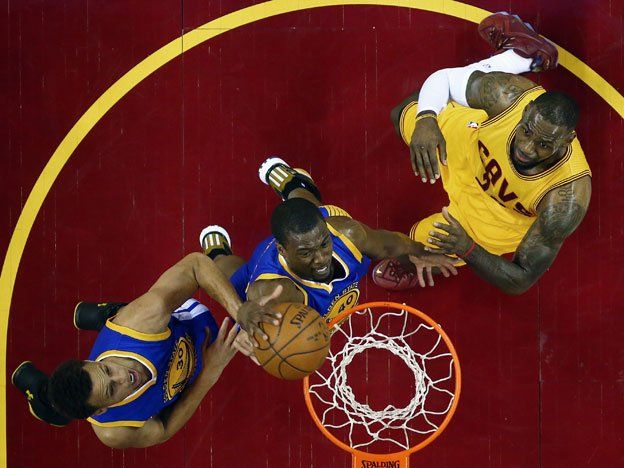 Cleveland, que busca su primer título como franquicia, contó con 20 tantos, 12 rebotes y 8 asistencias de su superestrella LeBron James, quien salió con algunos puntos en su cabeza luego de chocar bajo el aro contra un camarógrafo de la televisión.LeBron, que en los tres partidos anteriores había anotado 40 puntos o más, se notó fatigado, al igual que el australiano Matt Dellavedova. A ambos se les vio recibir masajes en las piernas en la banca debido a calambre.Por los Golden State destacaron Stephen Curry (22 puntos), además los aleros Draymond Greene y Harrison Barnes con 17 y 12 puntos, respectivamente, mientras su otra estrella Klay Thompson tuvo una mala noche y se quedó en 9 cartones solamente.Cleveland tuvo aporte inspirado del centro ruso Timofey Mozgov, el mejor anotador del equipo con 28 tantos y 10 rebotes, mientras Tristan Thompson colaboró con 12 unidades.