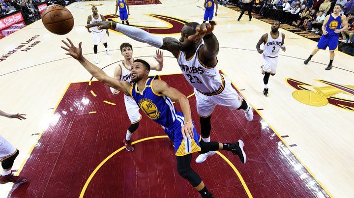Golden State Warriors diseñó aen la noche del miércoles un mejor cierre y se llevó un triunfo impensado como visitante de Cleveland Cavaliers, al que derrotó por 118-113, para adelantarse 3-0 en la final de la NBA de básquetbol, en los Estados Unidos. El campeón de la Conferencia Oeste quedó a un éxito de la obtención del anillo, premio que podrá obtener si gana mañana, viernes, en el duelo que volverá a disputarse en el Quicken Loans Arena de la ciudad de Cleveland. El conjunto dirigido por Steve Kerr aprovechó una ráfaga descomunal en el último minuto y medio de juego, en la que estableció un lapidario 11-0 para sentenciar el pleito y alcanzar su decimoquinto triunfo consecutivo en cotejos de play offs. El alero Kevin Durant, con 7 de sus 31 puntos en el cierre, resultó la figura indiscutida del encuentro, presenciado por más de 20 mil espectadores. El ex Oklahoma City culminó con una planilla de 6-11 en dobles, 4-7 en triples y 7-8 en libres, a los que les agregó 8 rebotes y 4 asistencias. Otro de los escuderos en la victoria de los Warriors fue el escolta Klay Thompson, quien finalizó con 30 unidades (5-7 en dobles, 6-11 en triples, 2-2 en libres), 6 rebotes y 2 pases gol. Mientras que el astro Stephen Curry acumuló 26 puntos, capturó 13 rebotes y entregó 6 asistencias. Por el lado de los Cavaliers, campeones vigentes, no alcanzaron con las descomunales actuaciones de sus dos máximas estrellas. El alero LeBron James cerró su labor con 39 puntos (15-27 en tiros de cancha), 11 rebotes y 9 asistencias, mientras que el base Kyrie Irving concluyó con 38 (16-29) y 6 rebotes. Tampoco hay que desdeñar los 9 tantos, 13 rebotes y 6 recuperos del ala pivote Kevin Love. En la primera parte del juego, Warriors impuso su ley con una marcada eficacia en los tiros a distancia (12-20 en triples), corriendo la cancha y aprovechando la velocidad del tandem Thompson-Curry. Pero desde el tercer cuarto, el equipo local tomó la iniciativa, con una superlativa tarea de Irving (16 puntos), bien acompañado por un consistente James, que aportó en todos los rubros, tal su costumbre. También fue decisiva la puntería del escolta JR Smith, con 4-5 en triples. El último parcial parecía rubricar la tendencia favorable a los Cavaliers. Pero sobre el final, las malas decisiones que tomaron los tiradores locales fueron capitalizadas por un quirúrgico Durant que adelantó nuevamente a Warriors, que se quedaron con el triunfo y ahora saborean la obtención del título.