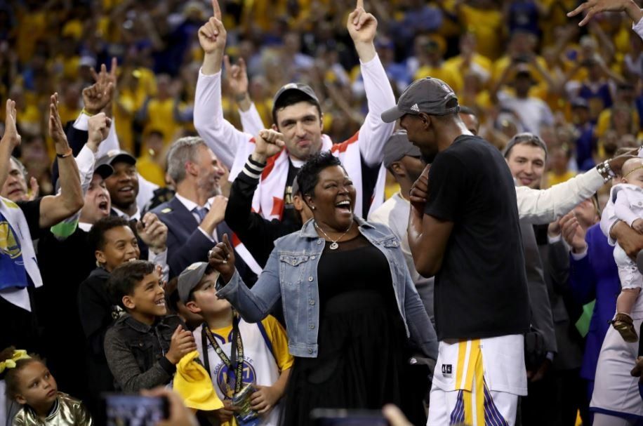 El astro Kevin Durant, que ayudó este lunes a que los Golden State Warriors a vencer 129-120 a los Cleveland Cavaliers para coronarse campeones de la NBA al llevarse la serie al mejor de siete por 4-1, le dedicó el título a su madre Wanda, por quien llegó a estar en lo más alto del básquet mundial. "Te lo dije cuando tenía ocho años. Lo logramos", le dijo en medio de los festejos generando la emoción de todos los espectadores.