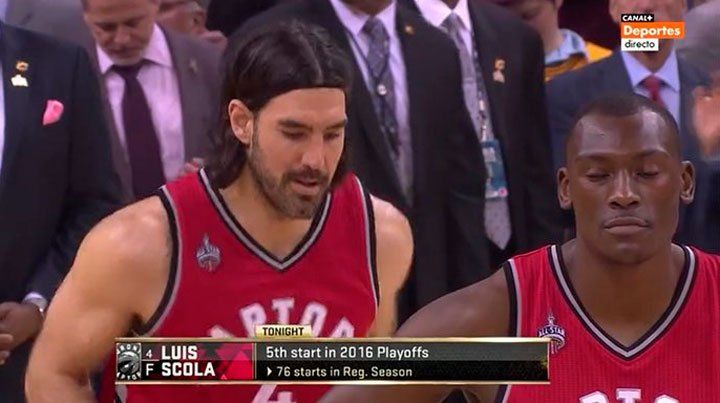 El ala pivote, que será abanderado de la delegación argentina en la ceremonia de Apertura de los próximos Juegos Olímpicos Río de Janeiro 2016, arrancó el juego como titular, por decisión del DT de la franquicia canadiense, Dwane Casey.