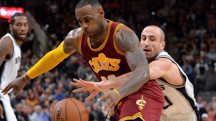 El escolta bahiense Emanuel Ginóbili anotó 10 puntos en la 23ra. victoria consecutiva como local de San Antonio Spurs (35-6), esta vez ante Cleveland Cavaliers (27-10) de LeBron James, por 99 a 95, en uno de los partidos jugados en la noche del jueves por la fase regular de la NBA. Por su parte, el ala-pivote porteño Luis Scola marcó 11 puntos en la victoria de Toronto Raptors (25-15) sobre Orlando Magic (20-19), por 106-103, en tiempo suplementario de un partido jugado en Londres. Ginóbili convirtió esos 10 tantos durante los 26 minutos y 12 segundos que permaneció en cancha, con 4-8 en dobles y 2-2 en lanzamientos libres, habiendo marrado tres intentos de triples. Además el bahiense sumó tres rebotes, una asistencia, un balón perdido y tres infracciones. Los Spurs sumaron 10 victorias seguidas y gozan de 23 triunfos seguidos como locales en el inicio de temporada,. El goleador del juego volvió a ser el base francés de los Spurs Tony Parker con 24 puntos, dos más que el máximo anotador de los Cavaliers, el alero James con 22 tantos. En el marco del programa Global Games, que difunde la práctica de la actividad en diferentes partes del mundo, la NBA hizo escala en el majestuoso O2 Arena de Londres en donde, ante 18.000 personas Toronto venció a Orlando. Scola arrancó como titular en la franquicia canadiense. Jugó 19 minutos, al cabo de los cuales tuvo eficacia ideal en los tiros de tres puntos: convirtió los tres lanzamientos que ejecutó. Además el ala pivote marcó 1-5 en dobles, propició tres robos y tomó dos rebotes. El mejor valor de los Raptors (25-15) resultó el armador Kyle Lowry, responsable de 24 puntos, ocho rebotes y siete asistencias. En los Magic (20-19), que reaccionaron en la segunda mitad y forzaron la igualdad en 96 puntos al cabo del período regular, se destacó el base de origen nigeriano Victor Oladipo, quien terminó con una planilla con 27 tantos. + Otros resultados de la jornada Philadelphia Sixers 111 (Covington 25)-Chicago Bulls 115 (Butler 53); Memphis Grizzlies 103 (Chalmers 25)-Detroit Pistons 101 (S. Johnson 19); Utah Jazz 101 (Hayward 21)-Sacramento Kings 103 (Cousins 36 y 17 reb) y Golden State Warriors 116 (Curry 26)-LA Lakers 98 (Clarkson 24). + Principales posiciones Conferencia Este: Cleveland Cavaliers 27-10, Toronto Raptors 22-15, Chicago Bulls 23-15, Atlanta Hawks 23-16, Indiana Pacers 22-17, Miami Heat 22-17, Detroit Pistons 21-18 y Orlando Magic 20-19. Conferencia Oeste: Golden State Warriors 37-3, San Antonio Spurs 35-6, Oklahoma City Thunder 28-12, LA Clippers 26-13, Dallas Mavericks 22-18, Memphis Grizzlies 22-19, Houston Rockets 21-19 y Utah Jazz 17-22.