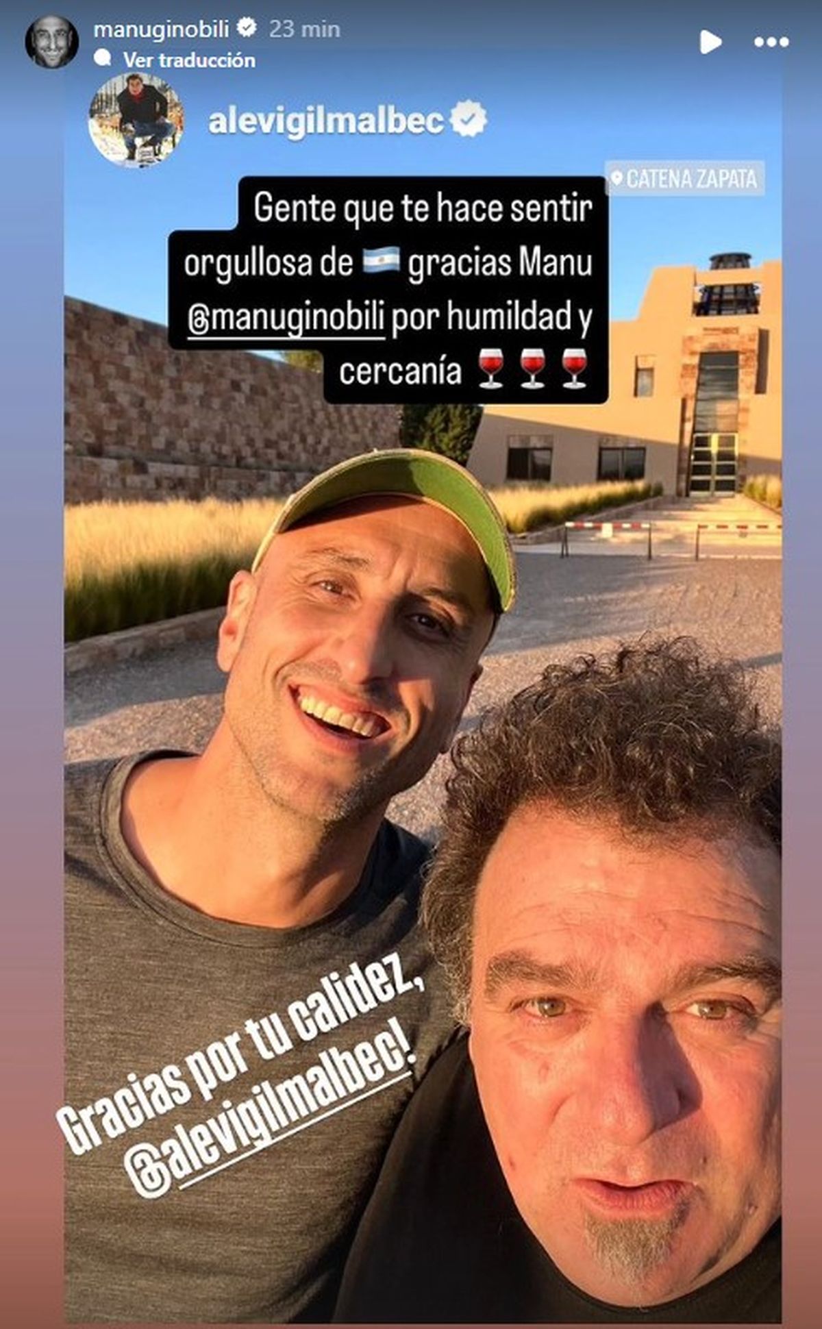 En el mismo tono, el Chapu Nocioni indicó que él y sus eternos compañeros de equipo pasaron una "Tremenda semana en Mendoza" y además de agradecer a Ale Vigil no dejó de mencionar a Laura Catena como anfitriona.