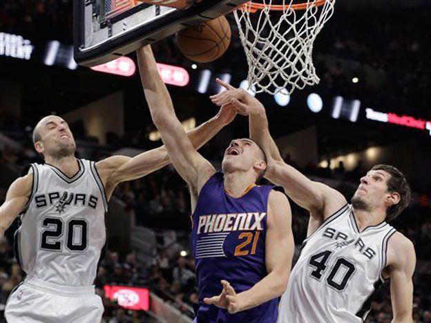 Emanuel Ginóbili jugó durante 19 minutos y 28 segundos en el triunfo de San Antonio ante Phoenix por 98-84, en uno de los partidos jugados por una nueva jornada de la NBA.