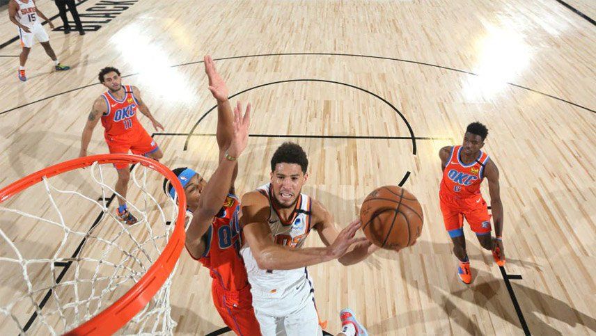 Phoenix Suns (32-39) obtuvo el sexto triunfo consecutivo, luego de la reanudación de la NBA de básquetbol, al derrotar a Oklahoma City Thunder (43-27), por 128-101, en la denominada burbuja de la ciudad de Orlando.
