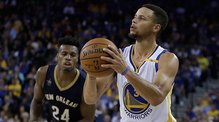 Stephen Curry logró un nuevo record de la NBA al anotar 13 triples, y terminó con 46 puntos arrebatando el protagonismo a la nueva estrella de Golden State, Kevin Durant, en el triunfo de los Warriors por 116-106 sobre los Pelicans de New Orleans, que todavía no conocen la victoria esta temporada.