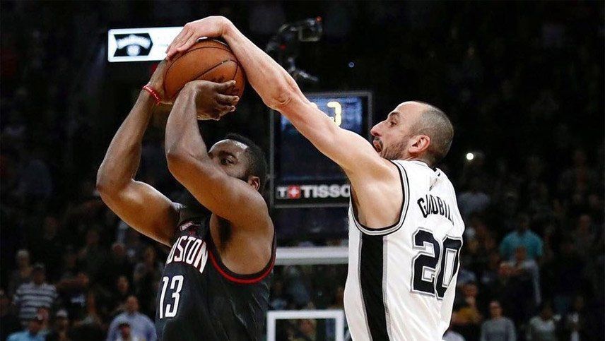 Claro que ese tapón de Manu no fue un tapón cualquiera, sino el que ejecutó sobre James Harden, en la semifinal de Conferencia Oeste de 2017, el cual le permitió a los San Antonio Spurs pasar a ganar la serie 3-2 sobre los Houston Rockets, para luego liquidarla como local.