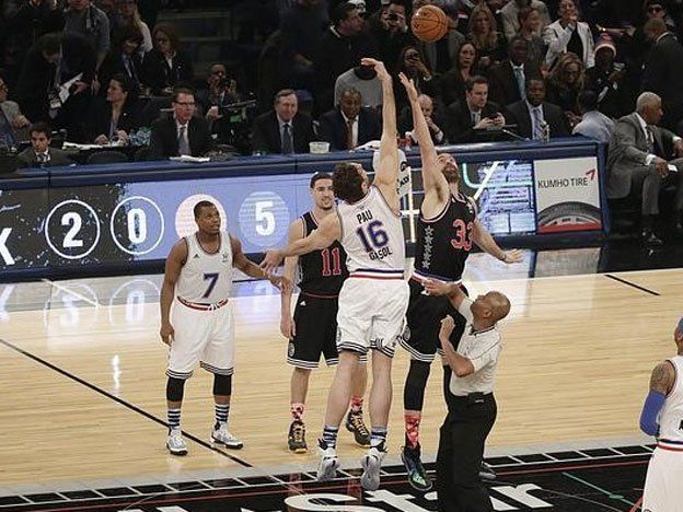 El domingo por la noche, se celebró la edición 2015 del All-star, que es un partido que reúne a los mejores jugadores de la NBA. Si bien no es un partido por puntos y es más para divertirse, siempre tiene su cuota de seriedad.Lo más emotivo fue que el salto inicial, que lo dieron los españoles Paul Gasol y Marc Gasol. Paul juega en los Chicago y Marc en Memphis.