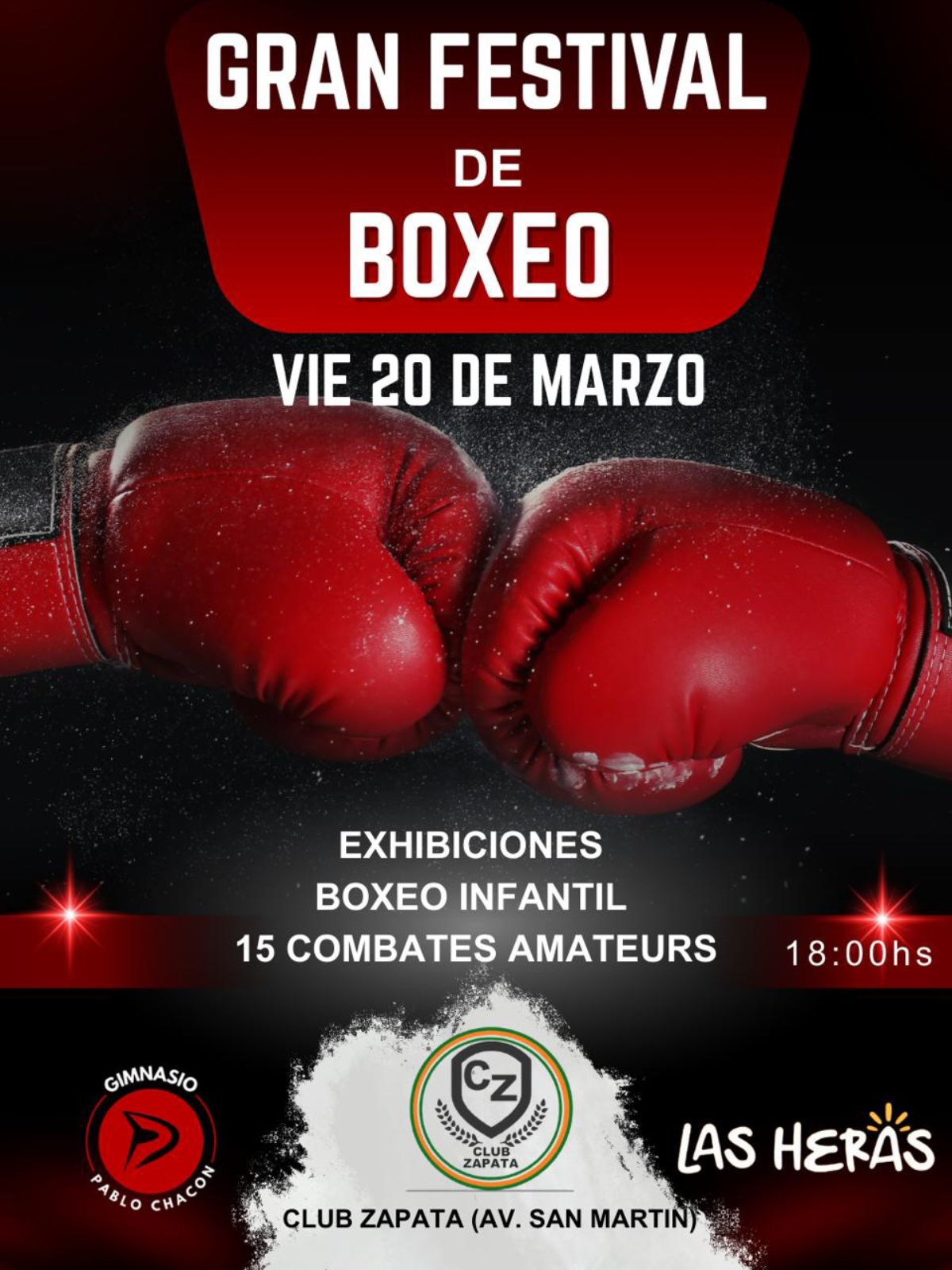 El próximo viernes 20 de marzo el Gimnasio de Pablo Chacón y la Municipalidad de Las Heras han organizado un extenso festival de boxeo amateur en el Club Social Zapata, de calle San Martín al 1957.