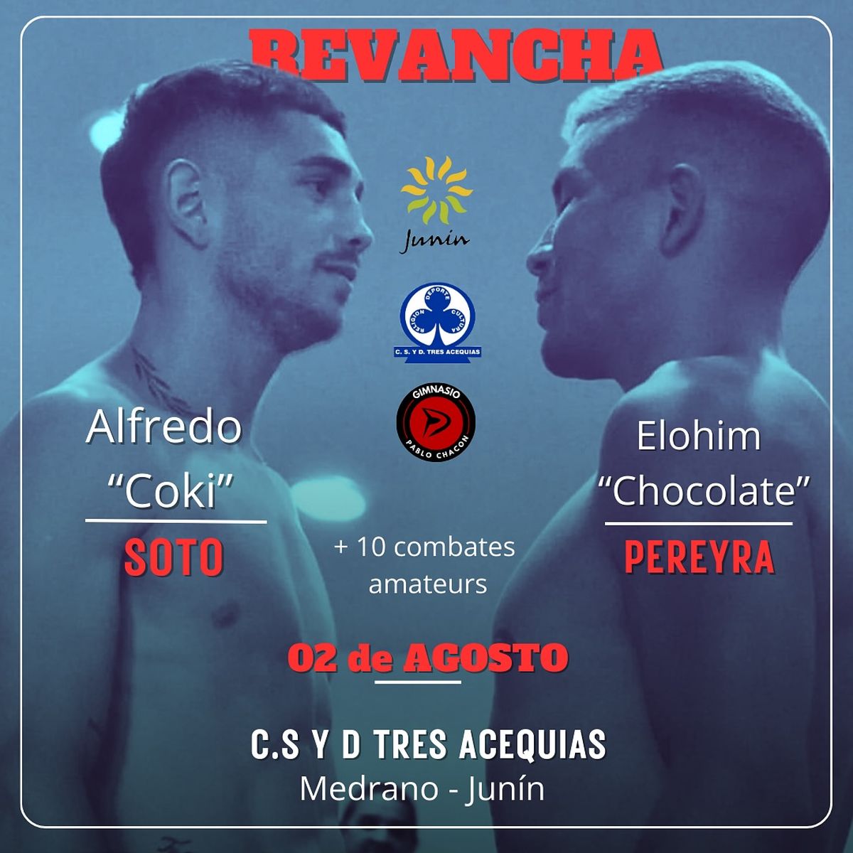 Se oficializó la pelea revancha de boxeo profesional entre el púgil mendocino Alfredo Jorge Luis Soto y el salteño Elohim Adonai Pereyra (Gustavo Armando) para el próximo viernes 2 de agosto a realizarse en el club donde Coki se inició en el boxeo, de la mano de Darío Herrera, el club Tres Acequias, de Medrano, Junín.