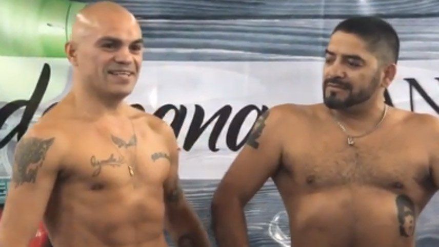 Los ex titulares ecuménicos, el mendocino Julio Pablo Chacón y el tigrense Jorge Rodrigo Barrios, mostraron sus físicos durante el pesaje oficial donde el Relámpago y la Hiena harán una exhibición, este viernes en Eugenio Bustos, San Carlos.