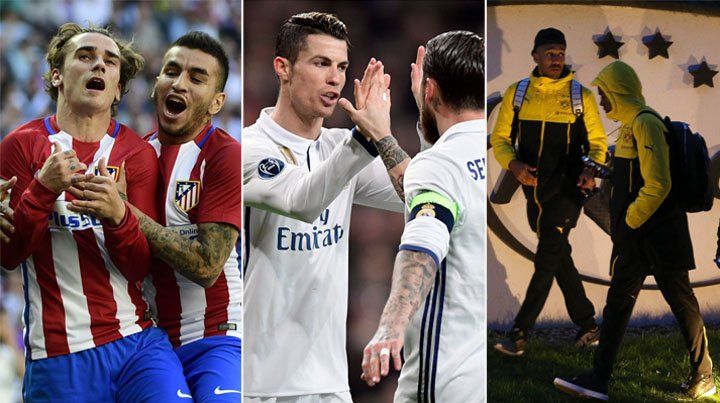 Atlético Madrid, de España, dirigido por Diego Simeone, iniciará los cuartos de final de la Liga de Campeones de Europa cuando enfrente como local al sorprendente Leicester, de Inglaterra, a partir de las 15.45, hora argentina.También jugarán Bayern Munich, de Alemania, será local ante Real Madrid, de España, desde las 15.45, y a las 13.45 lo harán el Borussia Dortmund alemán ante Mónaco de Francia, en un cotejo que debió jugarse el martes y fue postergado a causa de un artefacto explosivo que daño el omnibus que trasladaba al equipo local. Atlético de Madrid buscará confirmar su buen momento futbolístico con el tercer puesto en la liga española y su paso firme en el máximo certamen europeo a nivel de clubes que respaldan el trabajo de Simeone a tal punto que es uno de los candidatos a dirigir el seleccionado argentino de fútbol junto con Jorge Sampaoli.Enfrente tendrá Leicester, que se codea entre los grandes de Europa, que desde el alejamiento del entrenador italiano Claudio Ranieri, que lo consagró campeón por primera en su historia en la liga inglesa de fútbol, repuntó en su juego y lo trasladó a los resultados con la eliminación de Sevilla de España incluida en octavos de final.Bayern Munich y Real Madrid jugarán en el estadio Allianz Arena de Múnich en un cotejo catalogado como una final anticipada.Para ese encuentro, el entrenador italiano Carlo Ancelotti tendrá al arquero Manuel Neur y al delantero Thomas Müller, recuperados de sendas lesiones, pero aguarda por el atacante polaco Robert Lewandoski. En tanto, el club "merengue" tendrá a disposición a todo el plantel incluido el astro portugués Cristiano Ronaldo. La final de la Liga de Campeones de Europa 2016/2017 se llevará a cabo el 3 de junio en el estadio Millennium de Cardiff de Gales.