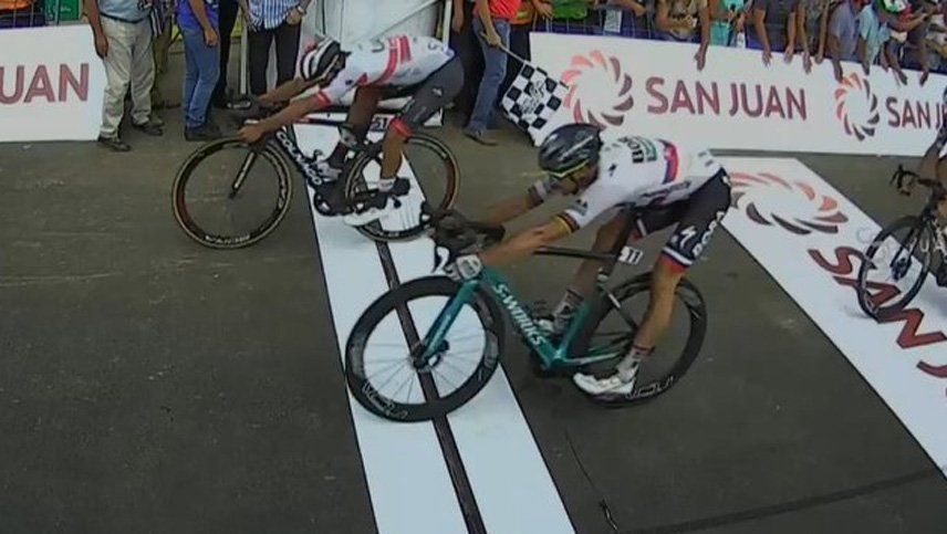 El colombiano Fernando Gaviria ratificó su condición de sprinter y se impuso en el embalaje final a Peter Sagan para quedarse con la cuarta etapa de la Vuelta a San Juan.