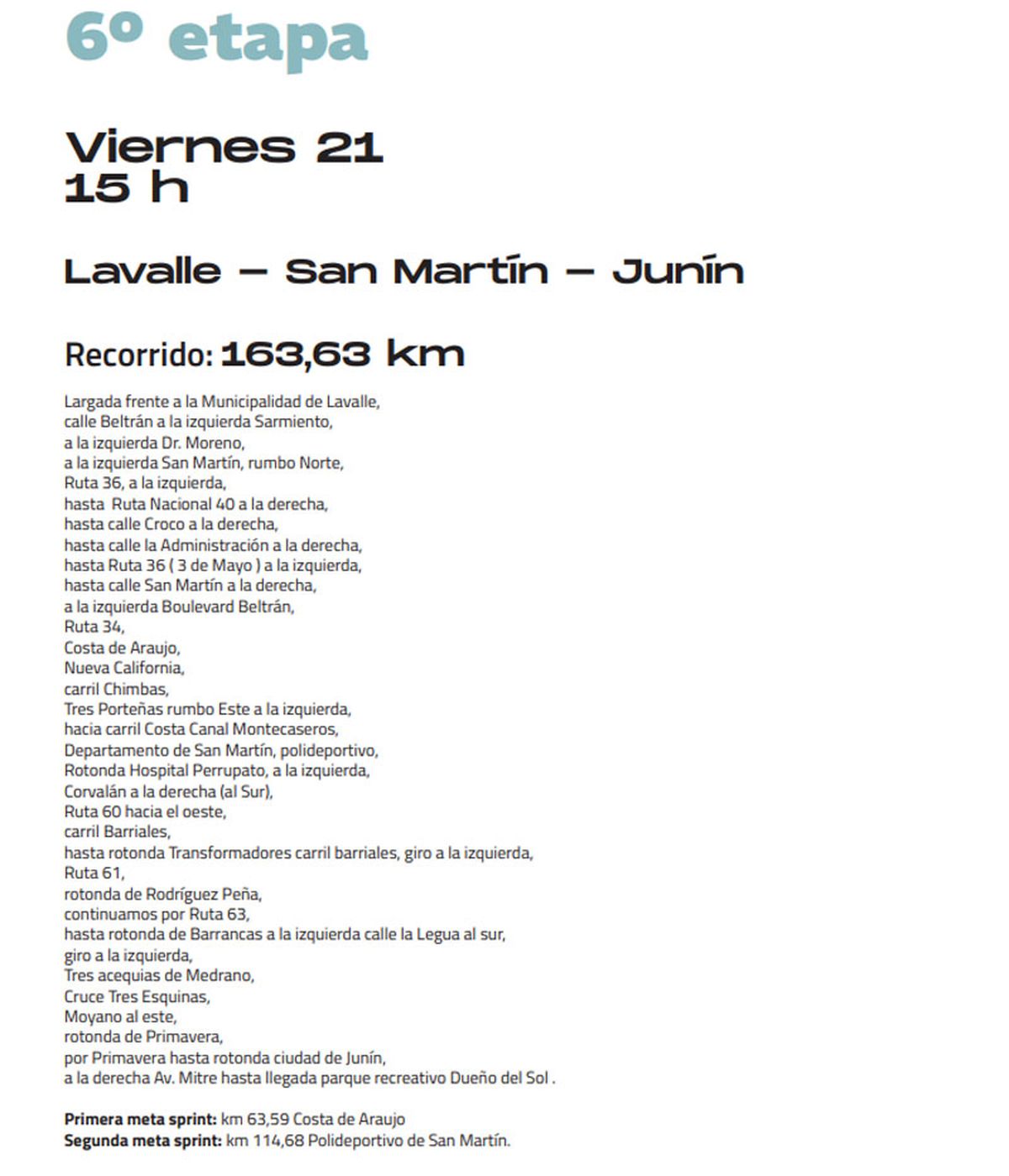 - Viernes 21/02 – 15:00 | 6ª Etapa – Lavalle – San Martín – Junín