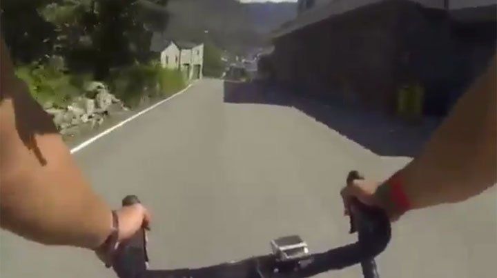 En el video se observa al catalán cuando él desciende a gran velocidad por una recta y al no lograr girar con su bicicleta en una curva choca contra una barda de seguridad y cae en un barranco.