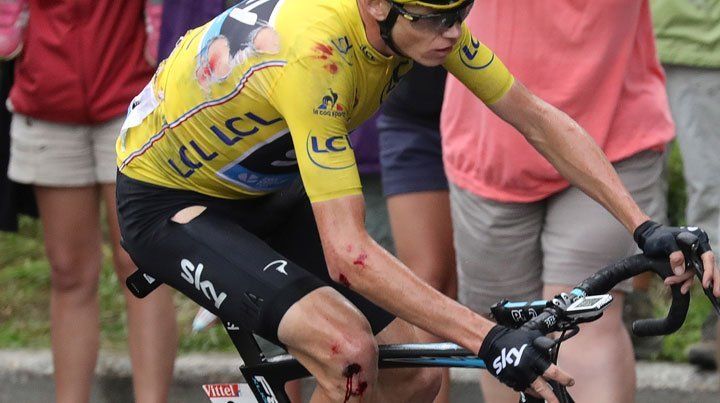 El francés Romain Bardet (AG2R) ganó en solitario la 19ª etapa de la prueba, marcada por la lluvia, en la que el líder Chris Froome (Sky) se fue al suelo en el último descenso.