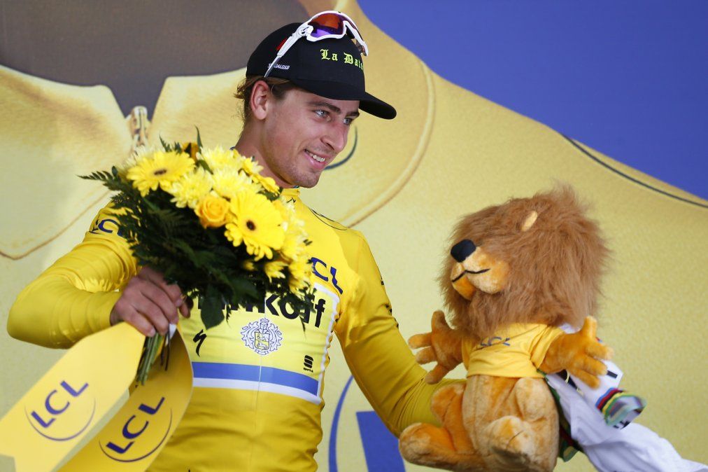El eslovaco campeón mundial Peter Sagan sacó el máximo provecho a un corto pero empinado ascenso en una emocionante final de la segunda etapa del Tour de Francia y se apoderó de la camiseta amarilla de líder general el domingo.
