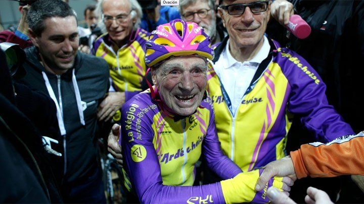 Robert Marchand, un ciclista de 105 años de edad estableció este miércoles que pasó el récord mundial de la hora en bicicleta dentro de la categoría de corredores que tienen su edad o más, al recorrer 22,547 kilómetros en 92 vueltas al circuito en el velódromo nacional de Saint-Quentin-en-Yvelines, cerca de París, Francia. "Estoy bien", dijo al bajarse de la bicicleta, sonriente y emocionado por el numeroso público que fue a acompañarlo al lugar en el que protagonizó la hazaña, y donde el anciano atleta superó hace tres años su propio récord de la hora con un total de 26,927 kilómetros.