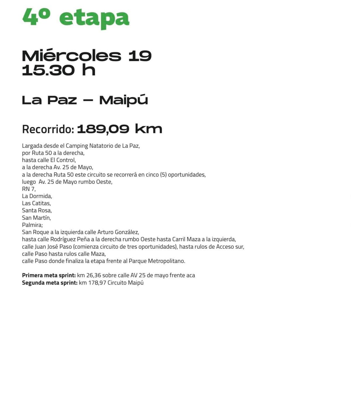Este miércoles, desde las 15.30, se disputará la 4ª etapa en el Este mendocino.
