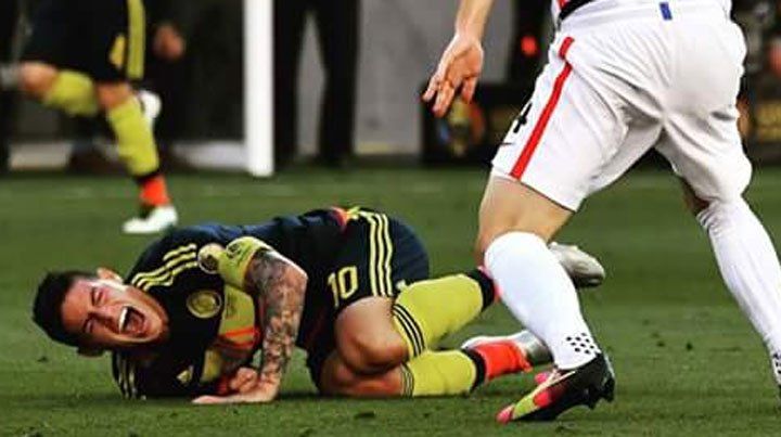 La estrella James Rodríguez dejó preocupada a toda Colombia tras sufrir un fuerte golpe en el hombro en el triunfo ante Estados Unidos el viernes en la apertura de la Copa América Centenario 2016. James Rodríguez se golpeó al caer mal promediando el segundo tiempo y debió ser reemplazado en el minuto 73 por el volante Guillermo Celis en el encuentro disputado en el Levis Stadium de Santa Clara (California, oeste).Una vez terminado el partido en el que Colombia se impuso 2-0 con goles de Cristian Zapata y el propio James de penal, la estrella de Real Madrid fue retirada por los pasillos del estadio a bordo en un carro.El entrenador José Pekerman se mostró muy prudente sobre el estado físico del jugador, a la espera de los resultados de los exámenes médicos. "Esperemos que lo de James no se complique mucho. Con el correr de las horas se va a ir manifestando cómo se recupera. Este sábado quizás tengamos un panorama más claro", sostuvo. "Todavía no me quiero poner a pensar en lo negativo. Vamos a ser optimistas que James pueda recuperarse bien y lo tengamos dentro de la cancha", agregó.