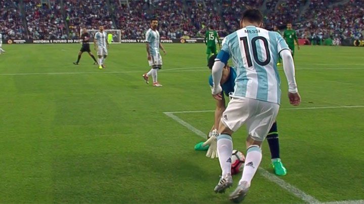 La pulga siempre tiene algo distinto para mostrar. Esta vez, aunque estaba adelantado paso la pelota entre las piernas del Uno boliviano.
