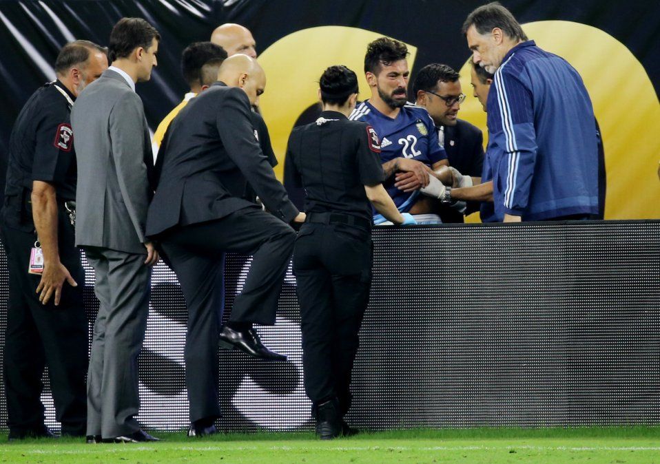El caso de Lavezzi es el más grave porque su caída de espaldas por encima de un cartel de publicidad cuando intentaba controlar el balón con el pecho le provocó una "luxo fractura en el codo izquierdo que necesitará reparación quirúrgica", según el parte médico dado a conocer minutos después de concluido el cotejo ante los estadounidenses.