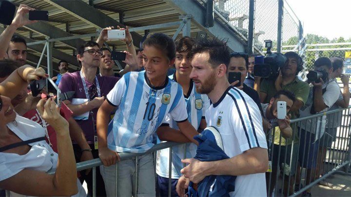 Messi, quien anotó dos goles en la práctica y fue figura con tres tantos en la goleada 5-0 ante Panamá, acaparó el pedido de hinchas, los pocos que ingresaron al predio universitario, en busca de una foto o un autógrafo.