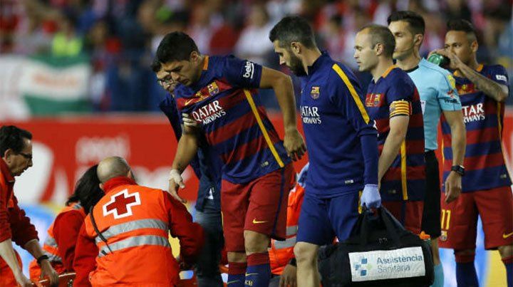 Suárez se lesionó este domingo en la final de la Copa del Rey que el Barcelona le ganó 2-0 al Sevilla y la página oficial del Barcelona consignó hoy que, luego de una serie de exámenes por imágenes realizados esta mañana, se constató que el delantero padece "una lesión en el semimembranoso de la pierna derecha".
