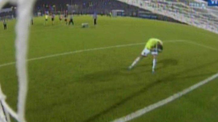 El guardametas, quien aparentemente no estaba muy concentrado en la acción de sus compañeros, fue sorprendido con un poderoso pelotazo en la cara.