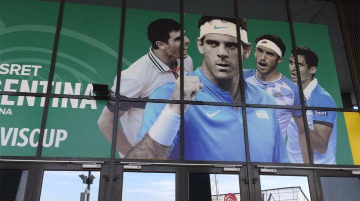 Allí, en el estadio con capacidad para 15.200 personas, Juan Martín Del Potro, Leonardo Mayer, Federico Delbonis y Guido Pella se entrenaron a las órdenes de los capitanes Daniel Orsanic y Mariano Hood, en la búsqueda de encontrar la mejor puesta a punto para un court que plantea menos dificultades de las que esperaban.