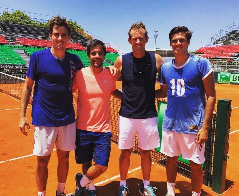El equipo argentino de Copa Davis inició este lunes por la mañana las prácticas oficiales para recibir a Italia con Guido Pella como único jugador presente en la cancha de Parque Sarmiento, escenario de la serie por la primera ronda del Grupo Mundial.El bahiense peloteó con el sparring Federico Coria (hermano de Guillermo "Mago" Coria) bajo un intenso calor, supervisado por el capitán Daniel Orsanic y el subcapitán Mariano Hood y con la entusiasta visita de unos 1.300 chicos de escuelas de tenis de la Ciudad de Buenos Aires.En el turno vespertino, que se llevará a cabo entre las 14.15 y 17.15, se aguarda la participación del correntino Leonardo Mayer y el chascomusense Carlos Berlocq, que reemplazó en el equipo al lesionado marplatense Horacio Zeballos.La mayor expectativa estará centrada en la presencia o no del primer singlista del equipo, Diego Schwartzman, que también podría quedar desafectado por una molestia física. Su eventual baja abriría la posibilidad de un replanteo por parte del azuleño Federico Delbonis, que inicialmente declinó la convocatoria por falta de descanso luego de la consagración ante Croacia en noviembre pasado. Argentina e Italia jugarán desde el viernes al domingo próximo sobre polvo de ladrillo en un estadio de Parque Sarmiento con capacidad para 7.000 personas.Será el cuarto enfrentamiento de un historial que curiosamente no registra victorias locales. El equipo "albiceleste" ganó las series disputadas en Roma 1983 y Pesaro 2016; mientras que los "azurros" lo hicieron en Mar del Plata 2014.