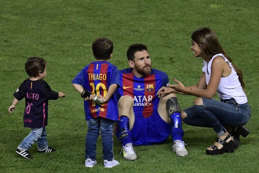 A las fotos familiares en el campo de juego que coparon las portadas de todos los diarios, se sumó una solo de los hombres Messi que tomó y dio a conocer la propia Antonella.