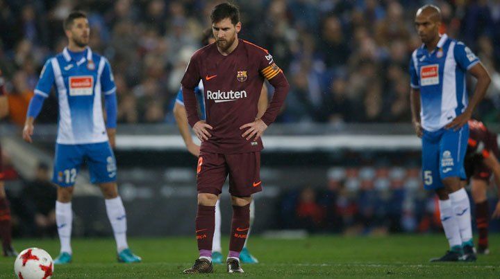 Lionel Messi erró este miércoles un penal en la caída de Barcelona, actual tricampeón, ante Espanyol por 1-0, de visitante, en el partido correspondiente a la ida de los cuartos de final de la Copa del Rey.