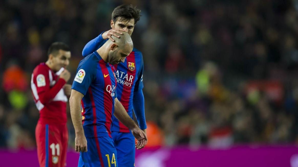 Javier Mascherano jugó apenas 30 minutos ante el Atlético de Madrid pero eso bastó para que sufriera una lesión que lo alejará de las canchas durante varios días.